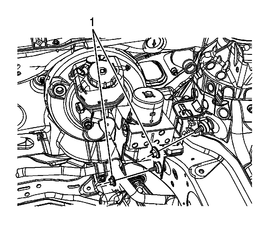 21. Remove the electronic brake and traction control module with brake pressure modulator valve assembly bracket bolts (1).