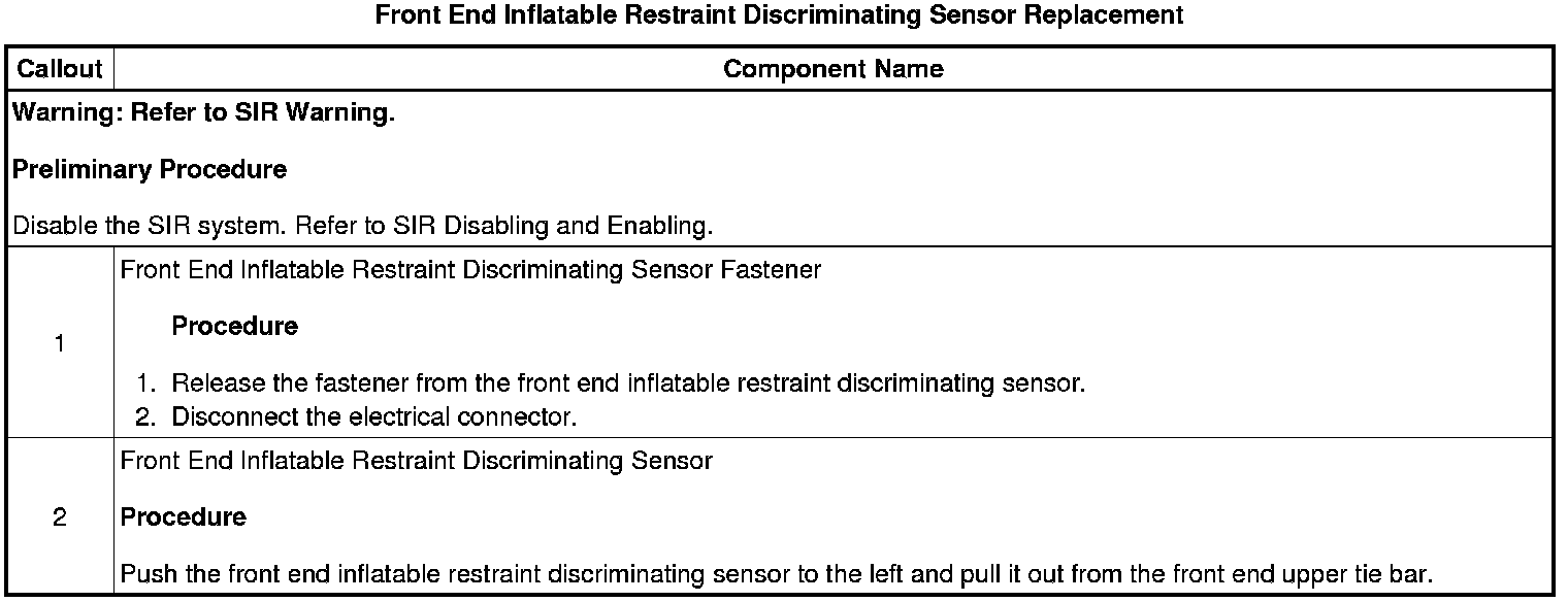 Front End Inflatable Restraint Discriminating Sensor Replacement