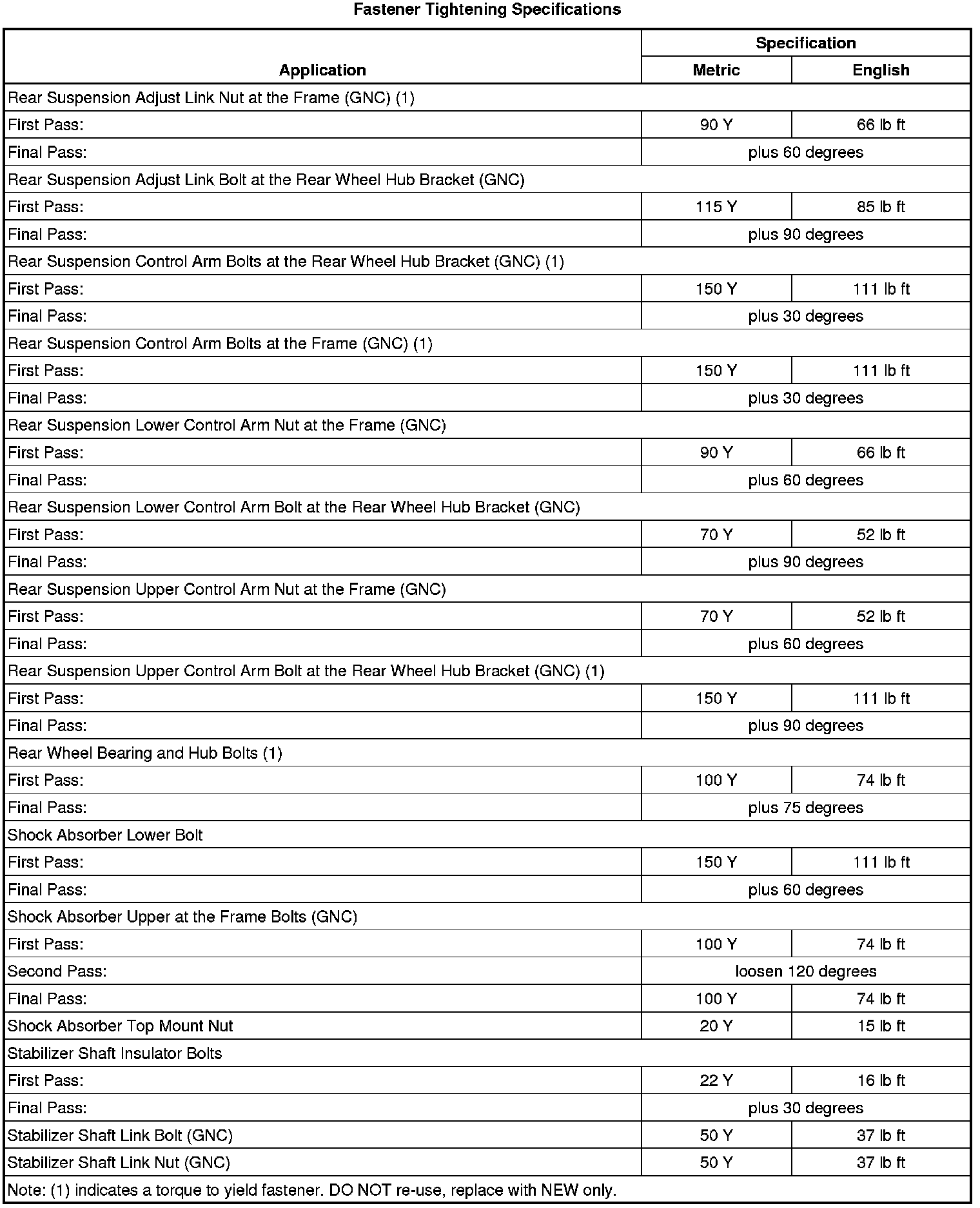 Fastener Tightening Specifications