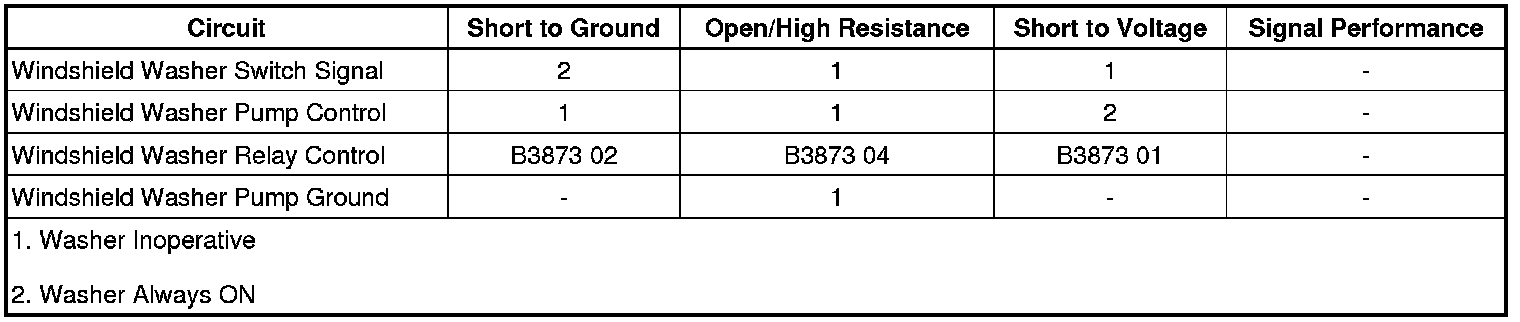 - Front Washer Relay Circuit Short to Battery