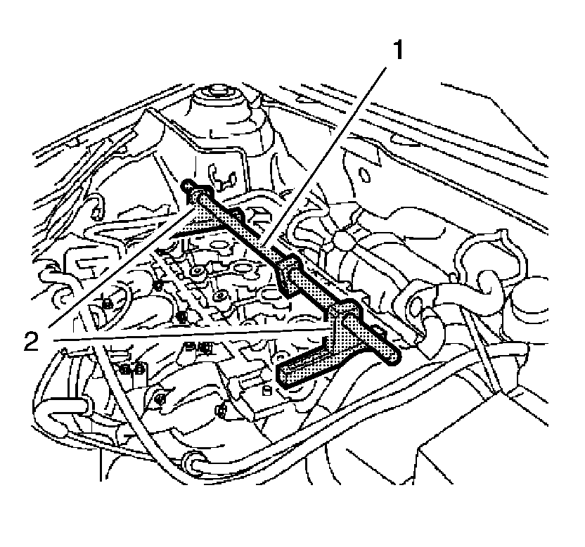 7. Install the lever arm bracket (1) to the cylinder head (2).