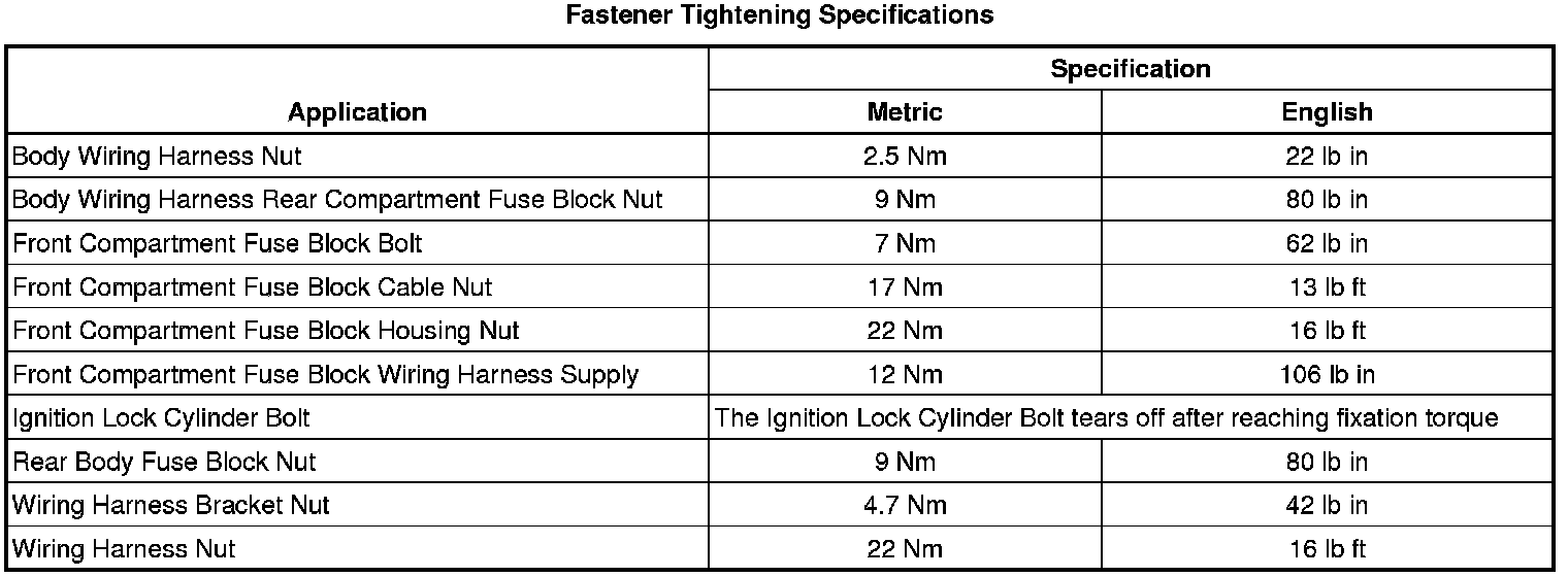 Fastener Tightening Specifications