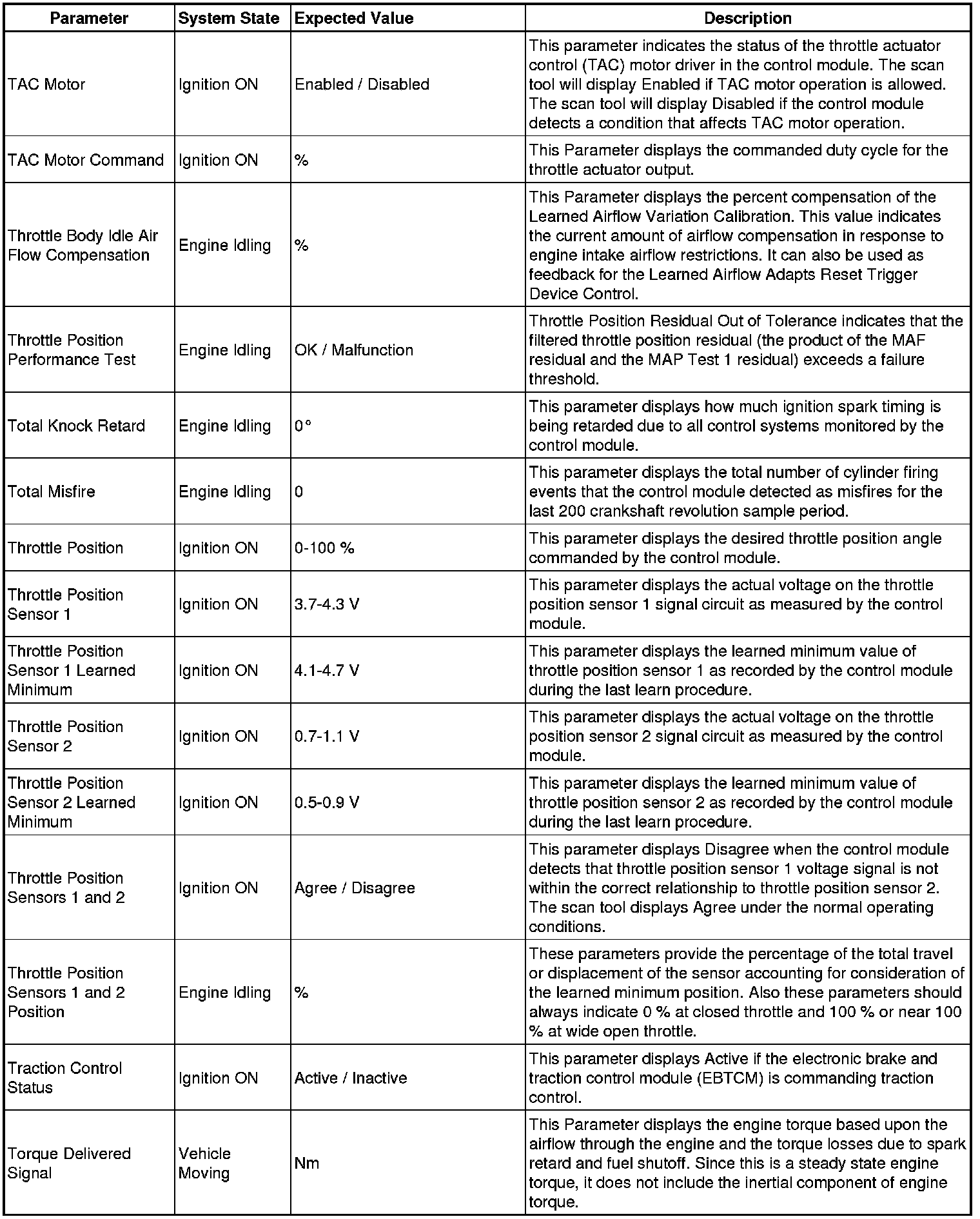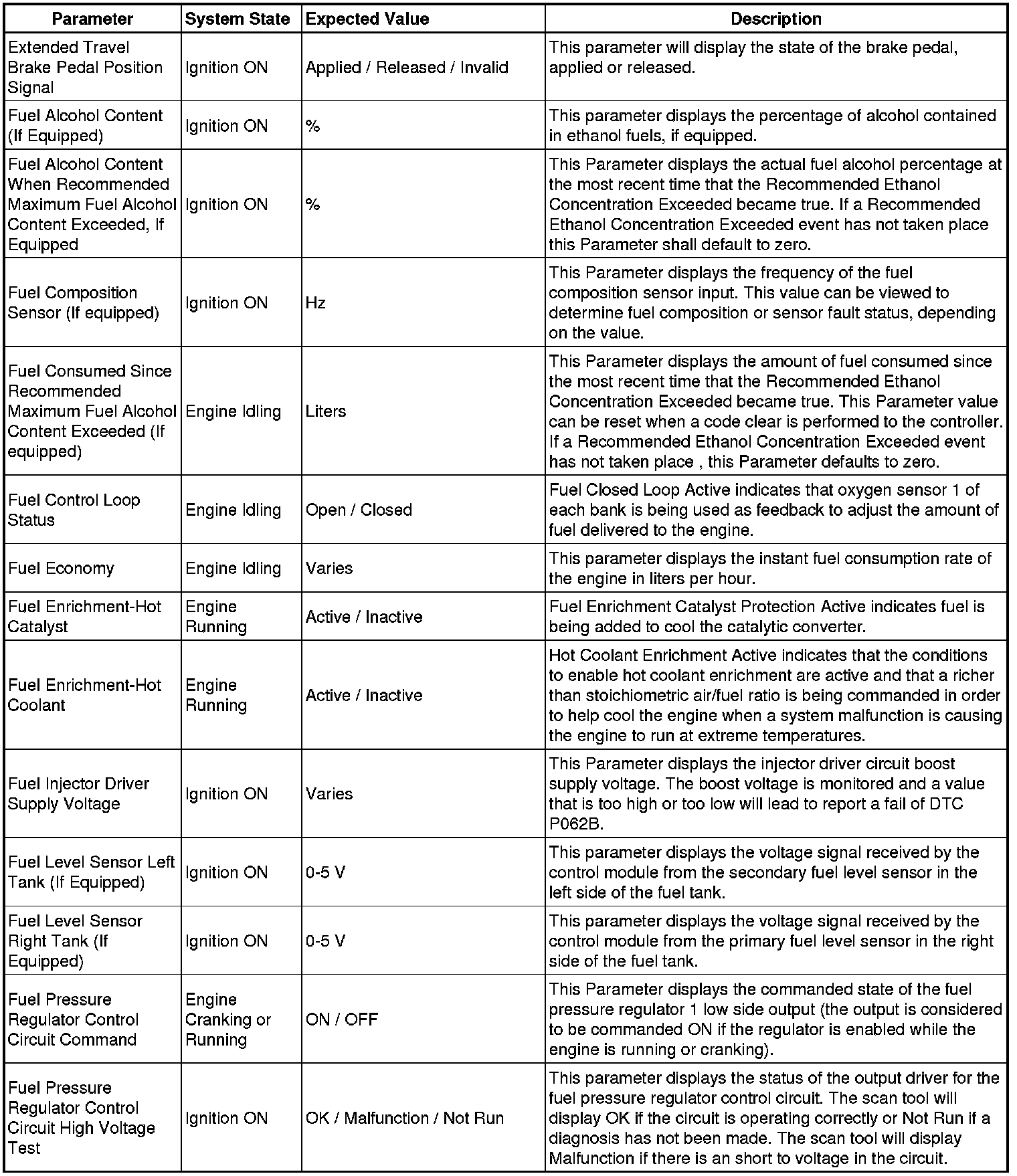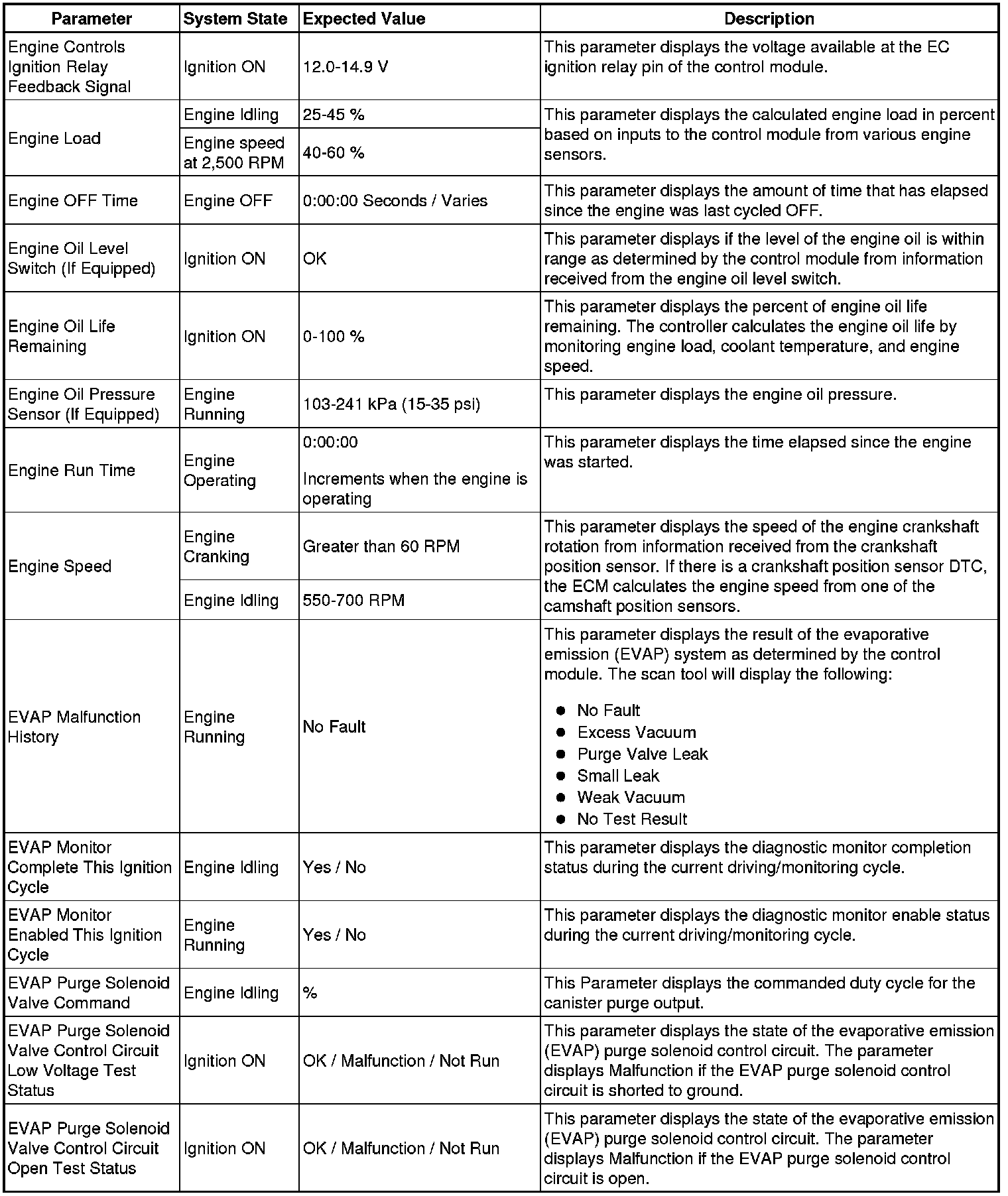 The Engine Control Module Scan Tool Data List contains all engine-related parameters that are available on the scan tool. The list is arranged in alphabetical order. A given parameter may appear in any one of the data lists, and in some cases may appear more than once, or in more than one data list in order to group certain related parameters together.