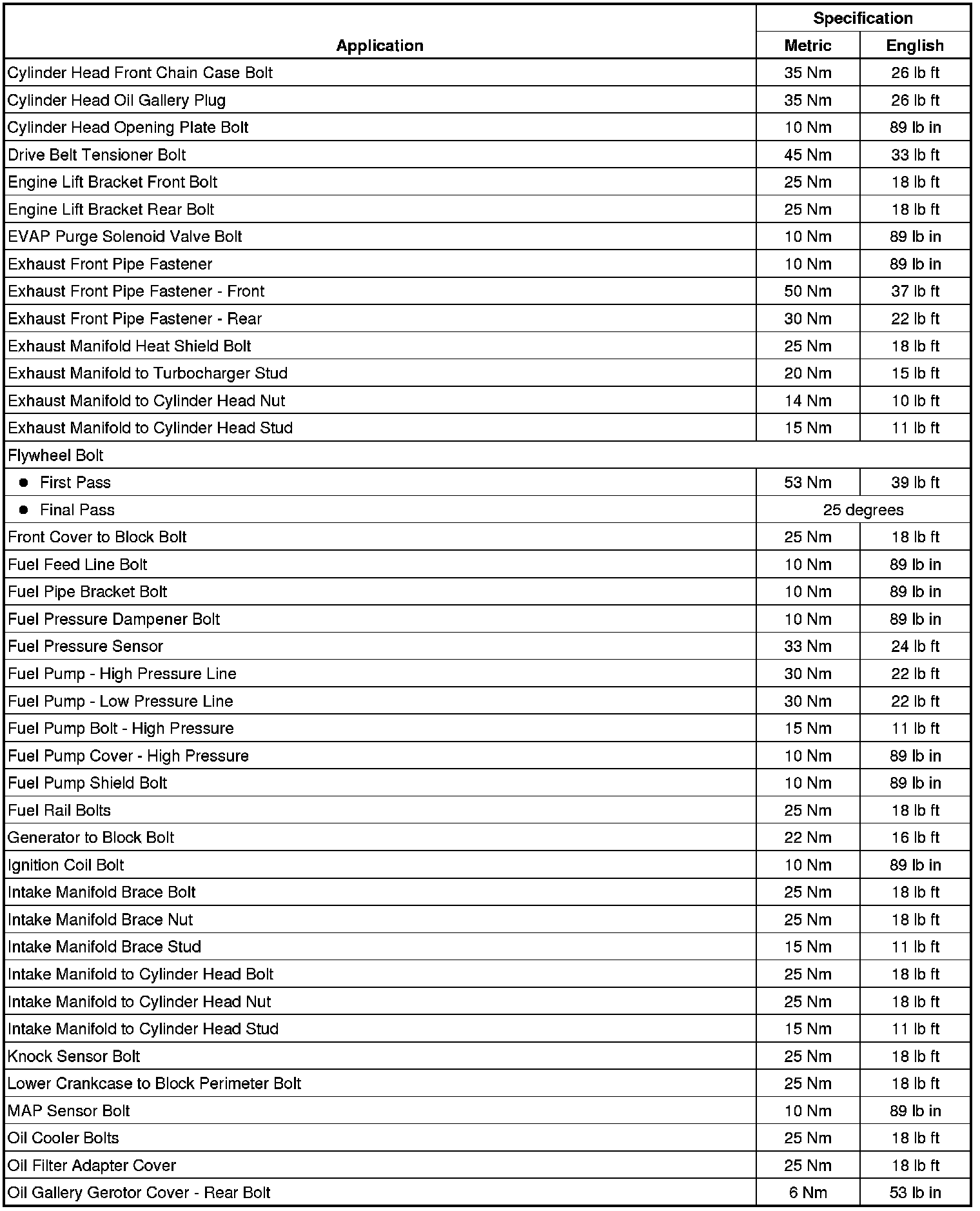 Fastener Tightening Specifications