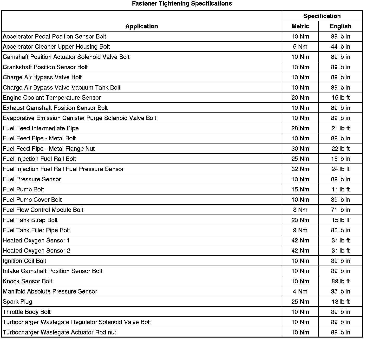 Fastener Tightening Specifications