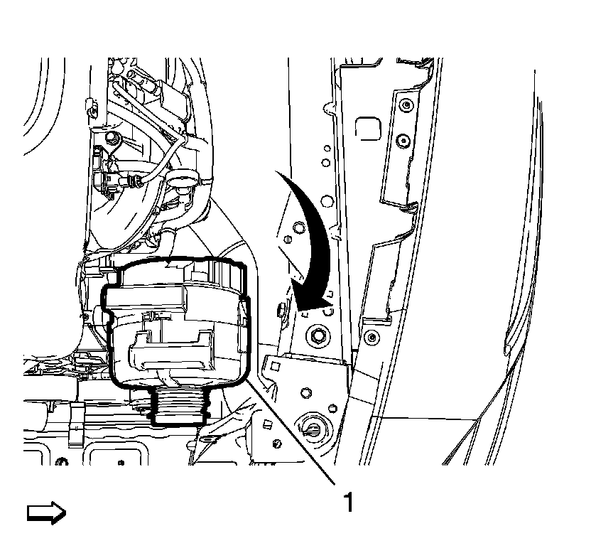 12. Turn the generator (1) back in normal position and remove the generator from vehicle as shown in the graphic.