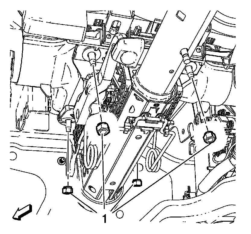 8. Remove and DISCARD the 4 steering column nuts (1).