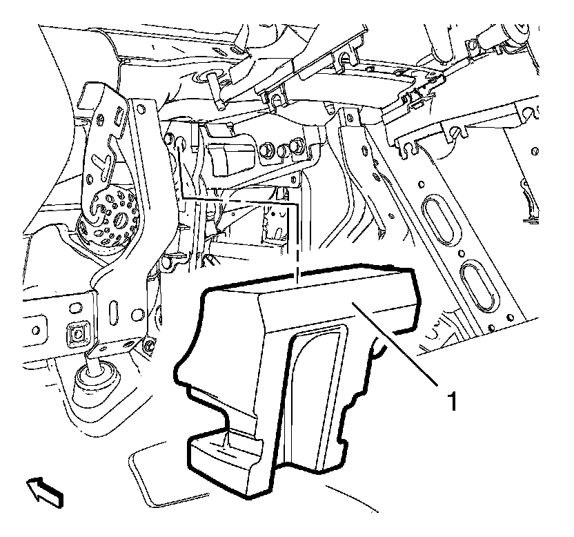 1. If equipped, remove the inflatable restraint instrument panel lower module. Refer to Instrument Panel Lower Airbag Replacement - Driver Side Instrument Panel Lower Airbag Replacement - Driver Side.
