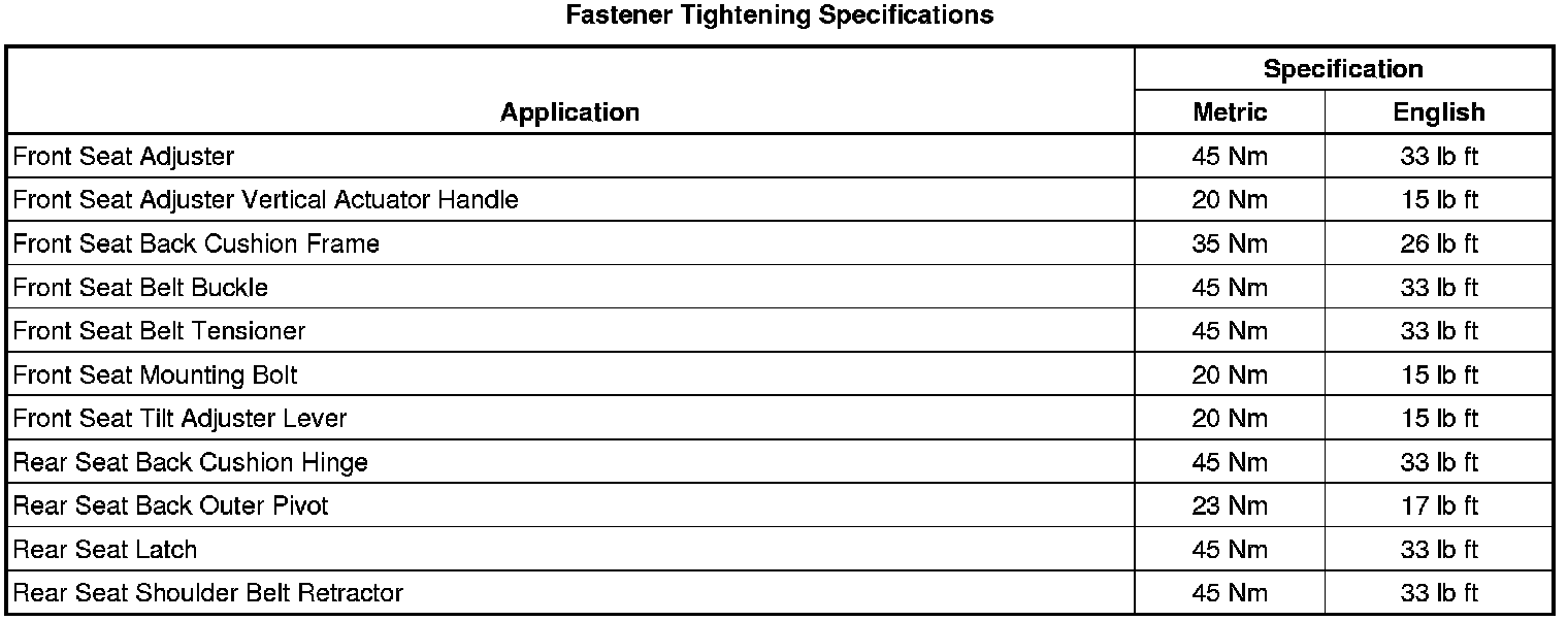 Fastener Tightening Specifications