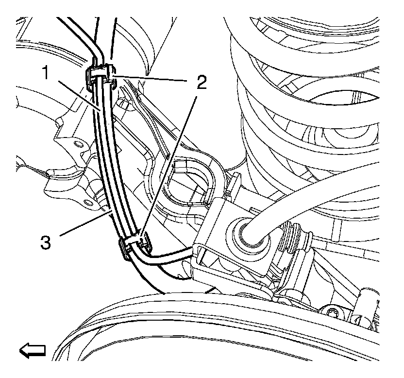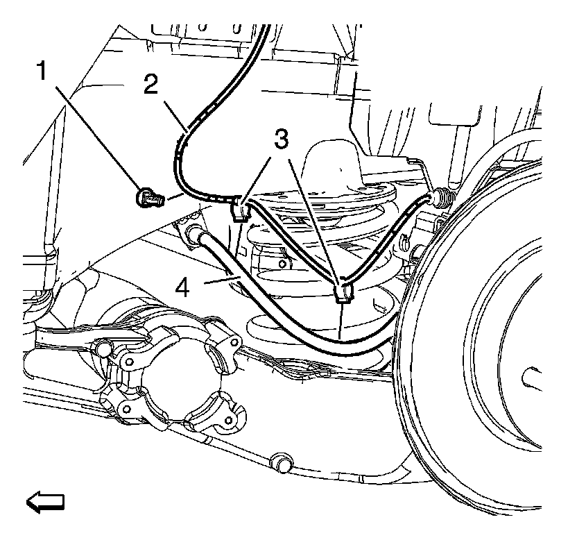 5. Remove the wiring harness (2) retainers (3) from the brake hose (4).