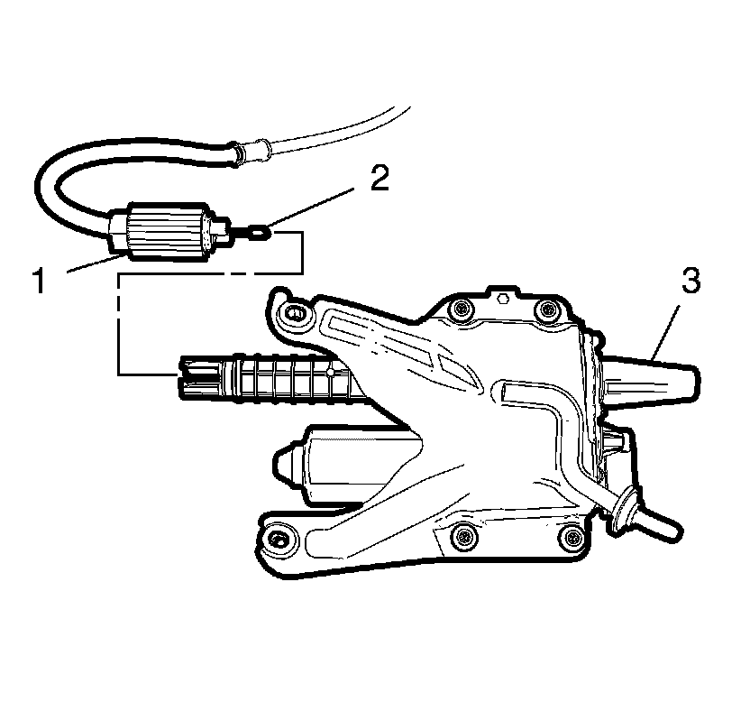 1. Install the parking brake cable (2) to the electronic parking brake control module (3).