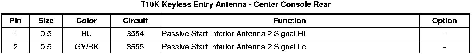 T10K Keyless Entry Antenna - Center Console Rear