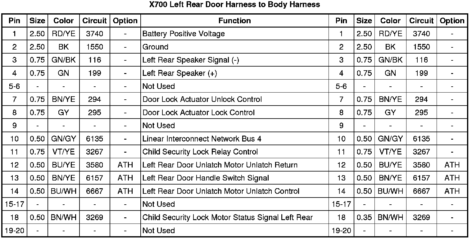 X700 Left Rear Door Harness to Body Harness
