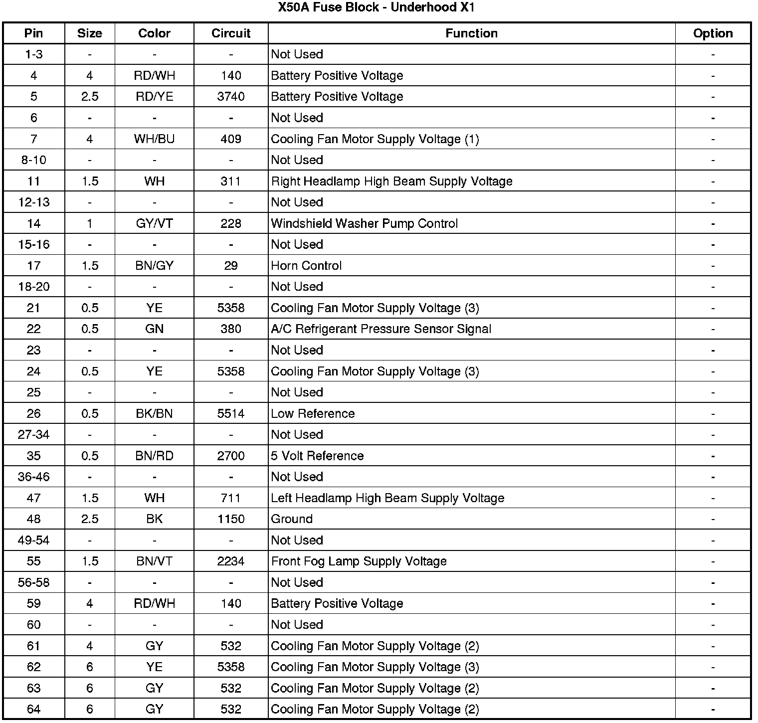 X50A Fuse Block - Underhood X1