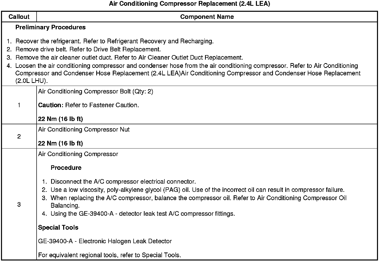 Air Conditioning Compressor Replacement (2.4L LEA)
