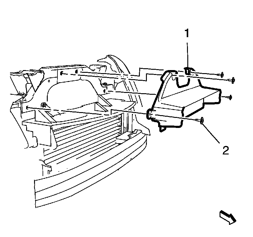 3. Remove the front bumper fascia. Refer to Front Bumper Fascia Replacement Service and Repair.