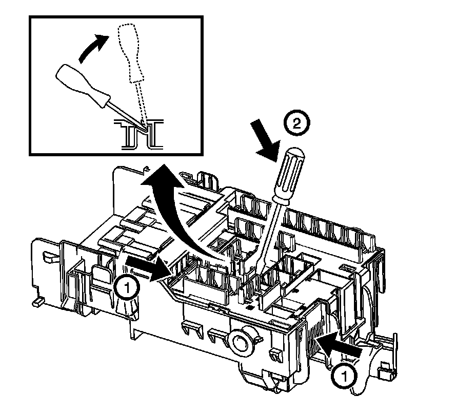 1. Push the locking arms and unlock the fuse block.