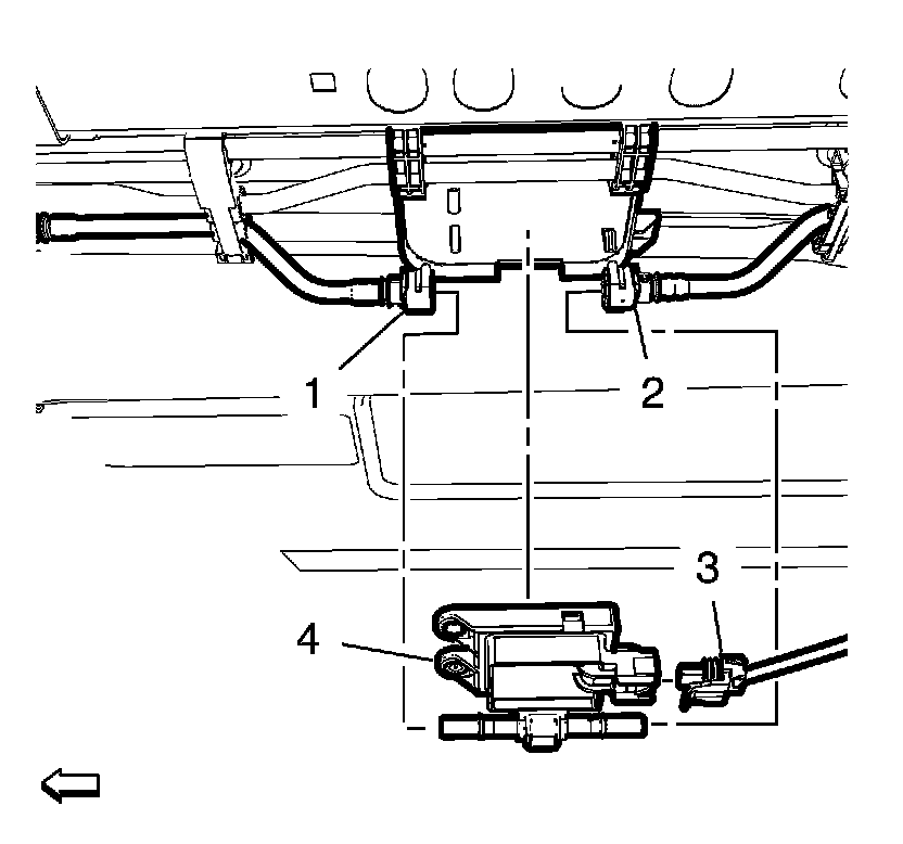 3. Remove the fuel feed pipe (1, 2) from the flexible fuel sensor (4). Refer to Plastic Collar Quick Connect Fitting Service Plastic Collar Quick Connect Fitting Service.