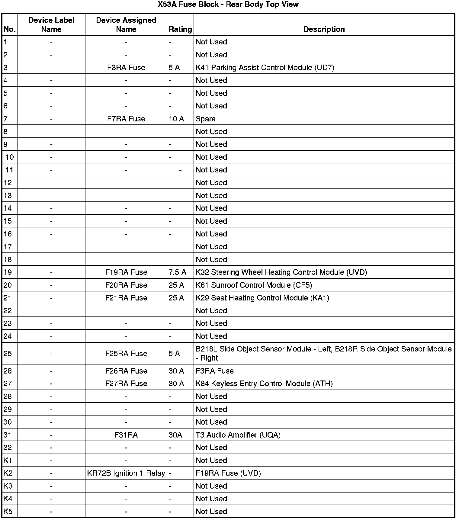 X53A Fuse Block - Rear Body Top View
