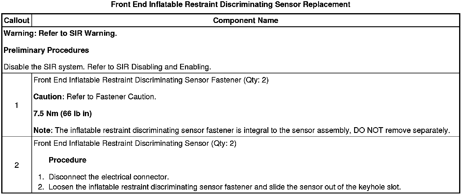 Front End Inflatable Restraint Discriminating Sensor Replacement