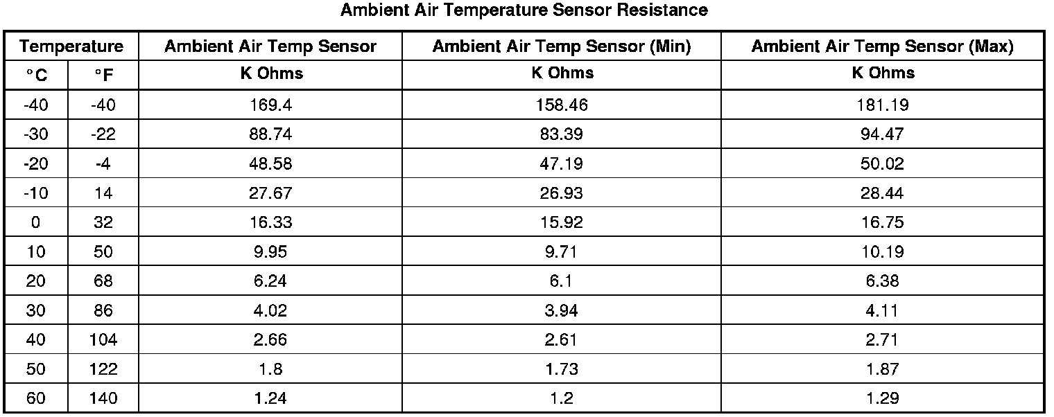 Ambient Air Temperature Sensor Resistance