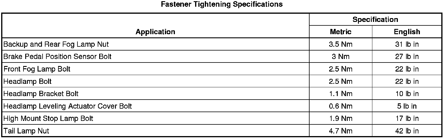 Fastener Tightening Specifications