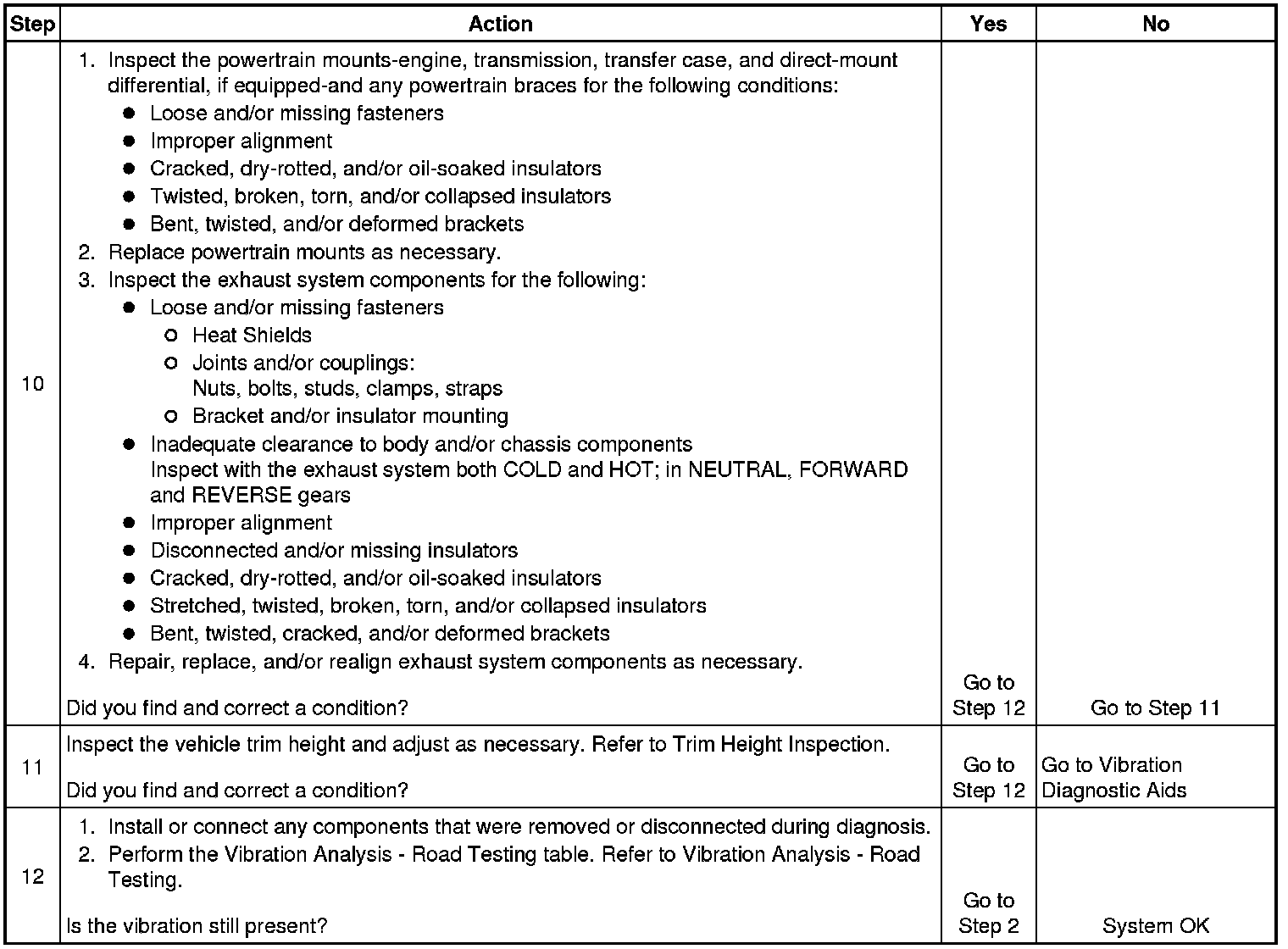 The numbers below refer to the step numbers on the diagnostic table:
