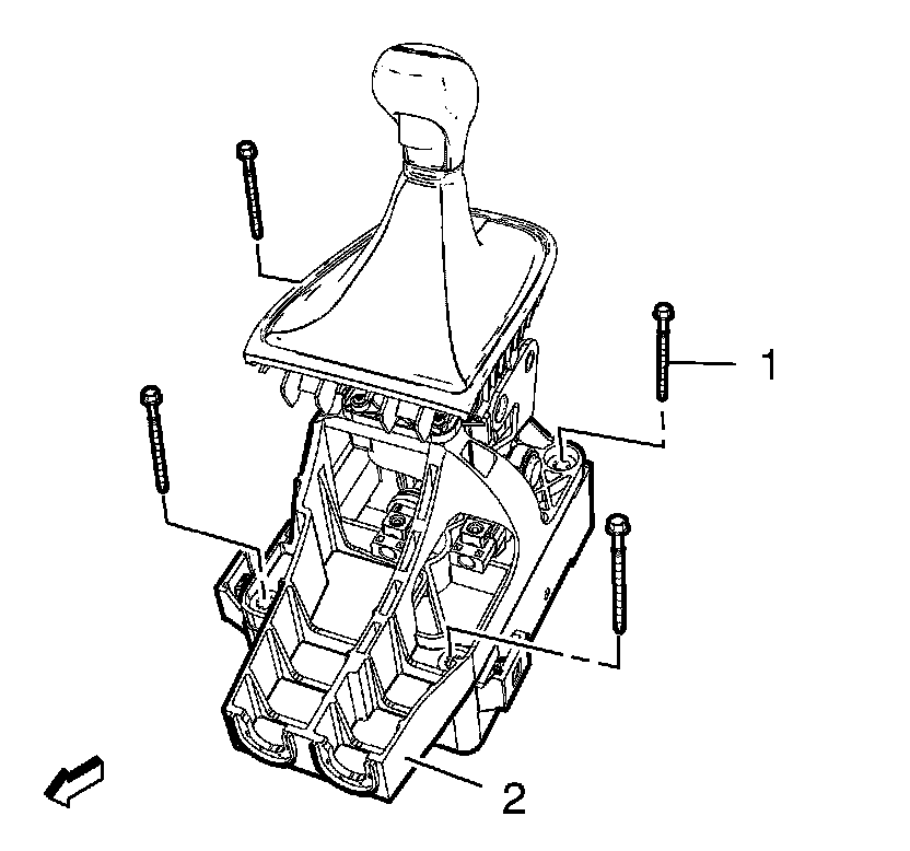 1. Remove front floor console. Refer to Front Floor Console Replacement Front Floor Console Replacement.
