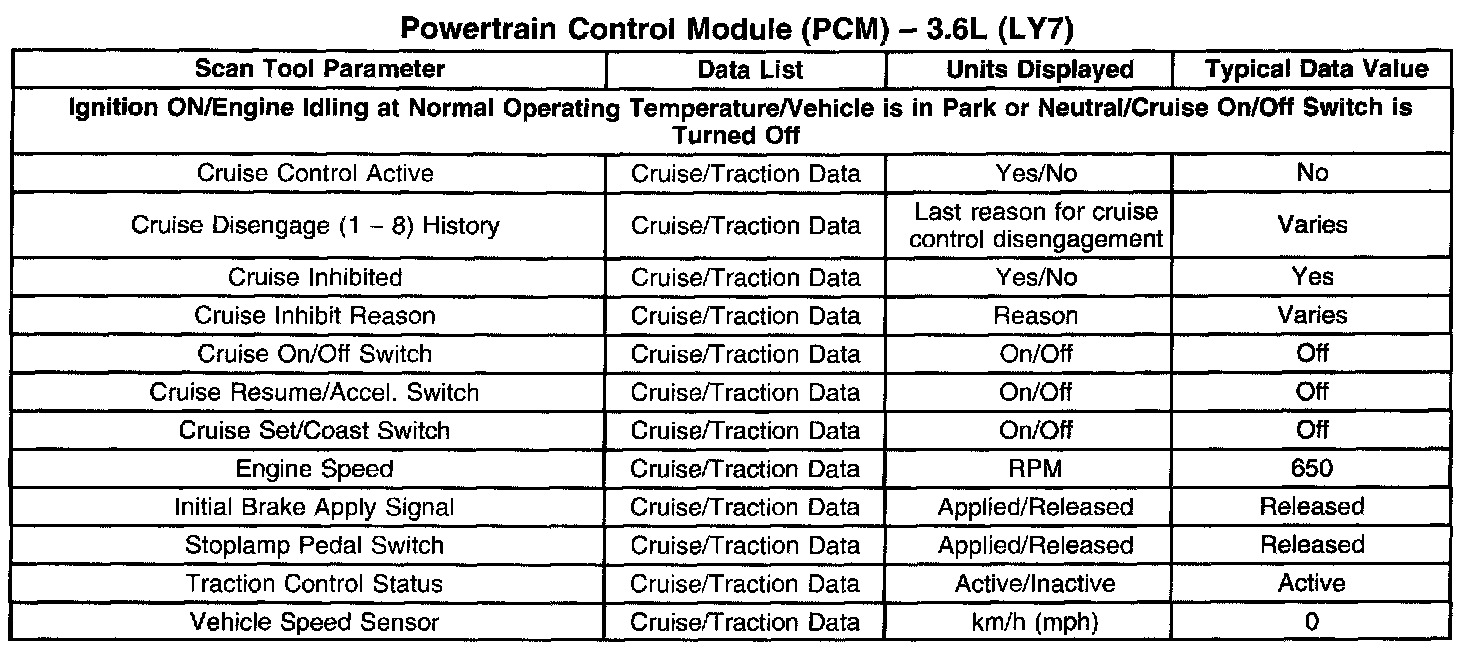 Scan Tool Data List - Powertrain Control Module (PCM)