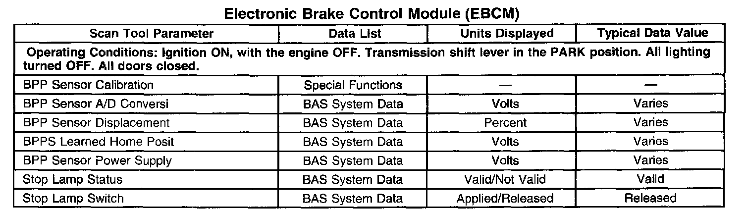 Scan Tool Data List - Electronic Brake Control Module (EBCM)