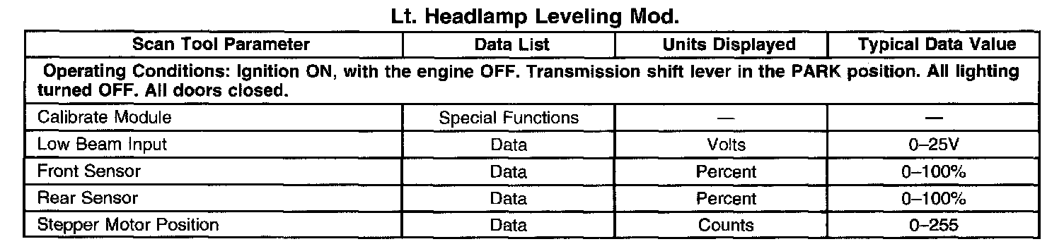 Scan Tool Data List - Lt. Headlamp Leveling Mod.