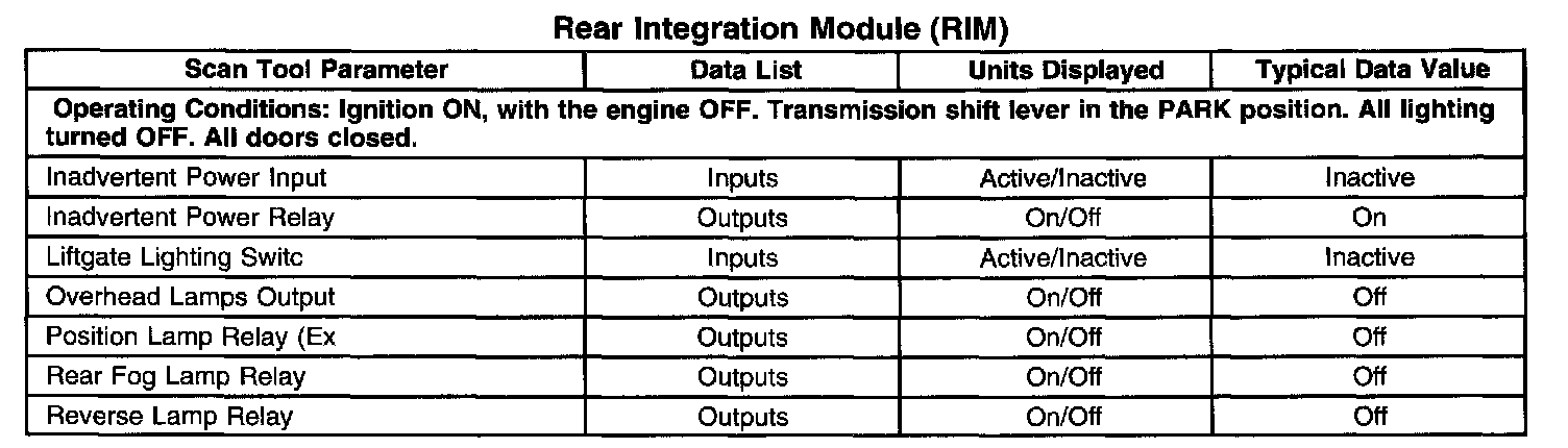 Scan Tool Data List - Rear Integration Module (RIM)