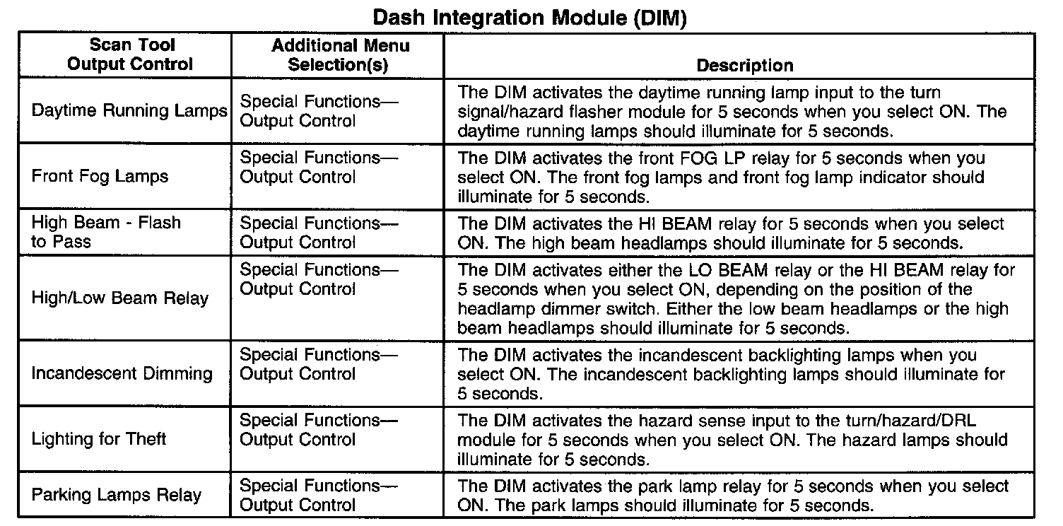 Scan Tool Output Controls - Dash Integration Module (DIM)