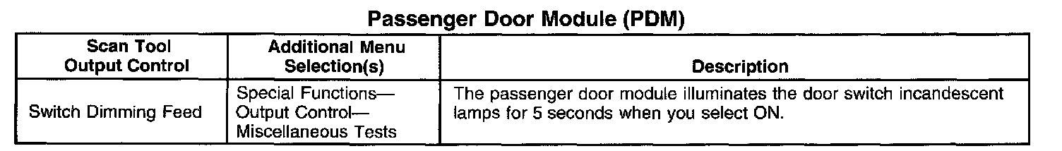 Scan Tool Output Controls - Passenger Door Module (PDM)