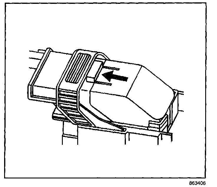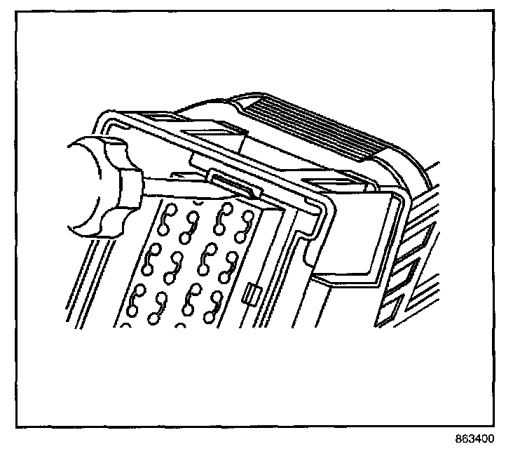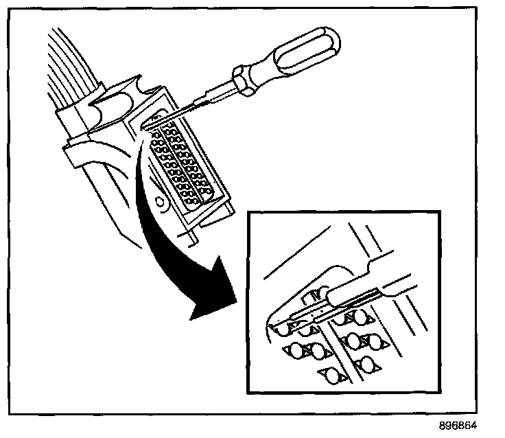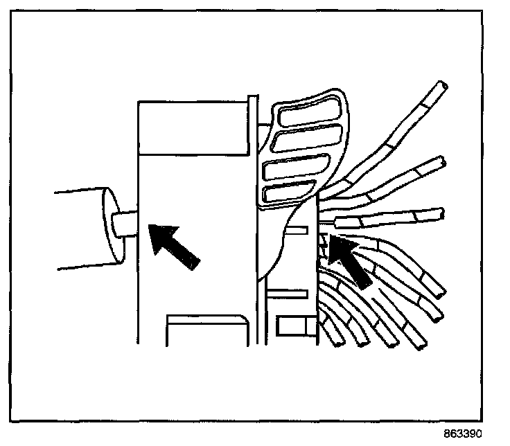 7. Insert the J 44020-4 (GM P/N 15314260) tool into the 2 triangular cavities on each side of the terminal at the front of the connector.