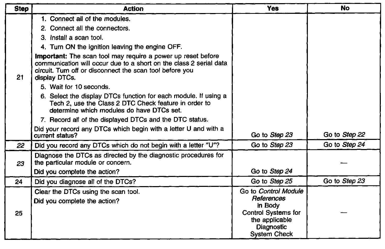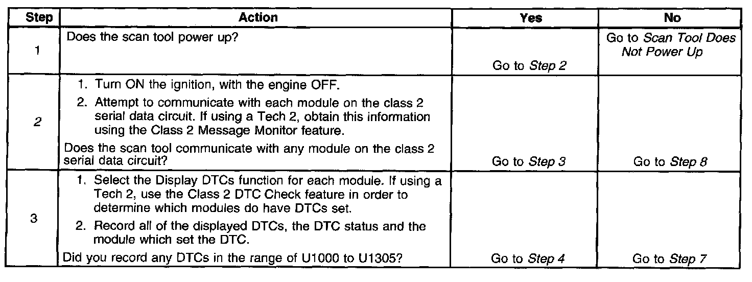 2. A partial loss of communication in the class 2 serial data circuit uses a different procedure than a total loss of communication of the class 2 serial data circuit.