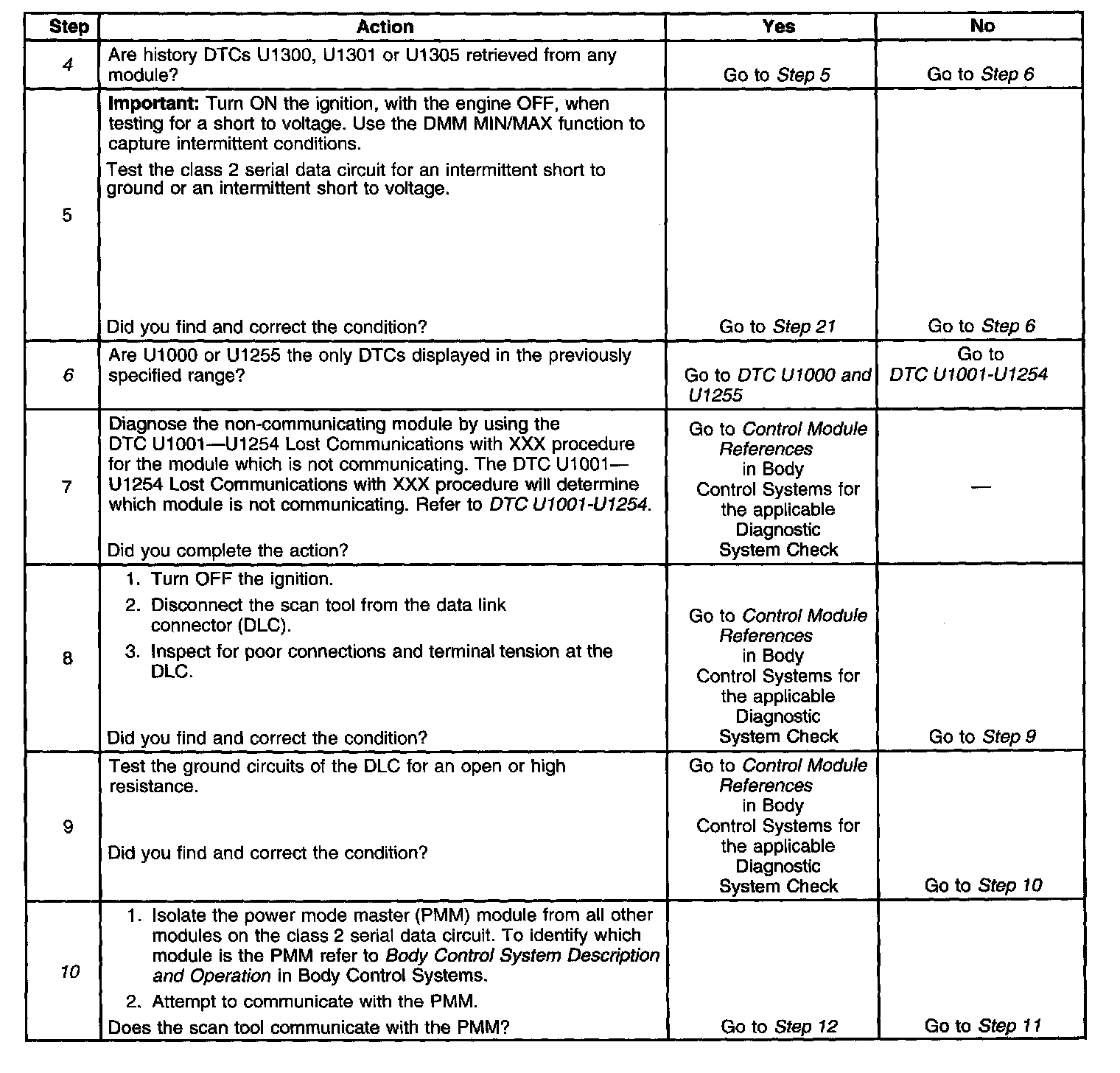 10. Normal class 2 serial data communication cannot take place until the power mode master (PMM) module sends the appropriate power mode message. If the PMM does not send a wake-up message, other modules on the class 2 serial data circuit may not communicate.