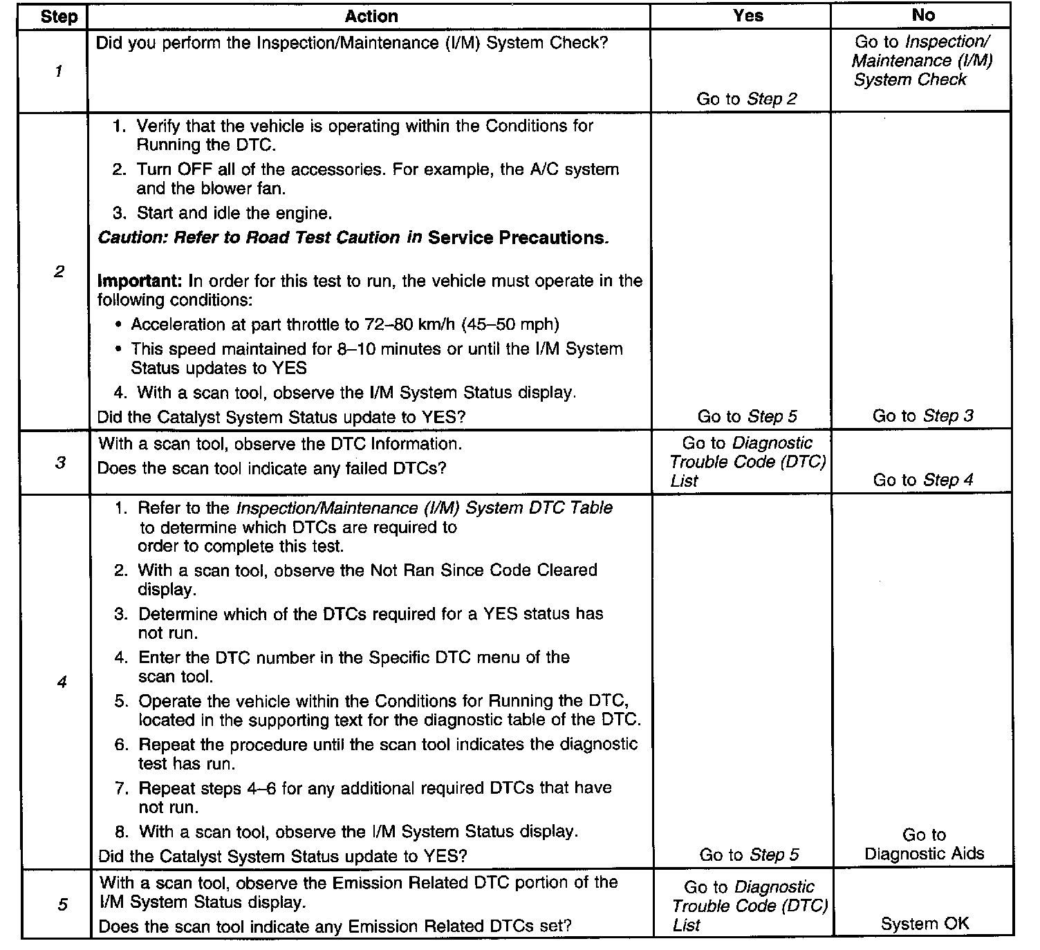 1. Perform the I/M System Check before performing this test. Failure to do so may result in difficulty updating the status to YES. Inspection/Maintenance (I/M) System Check