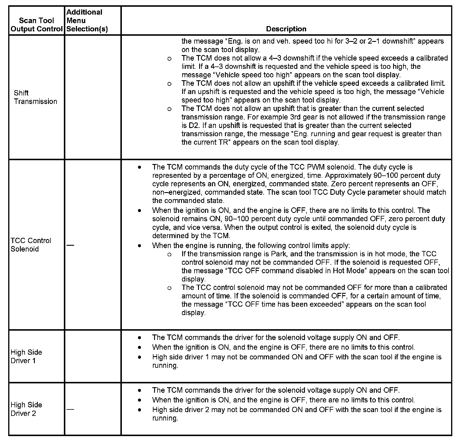 Scan Tool Output Controls