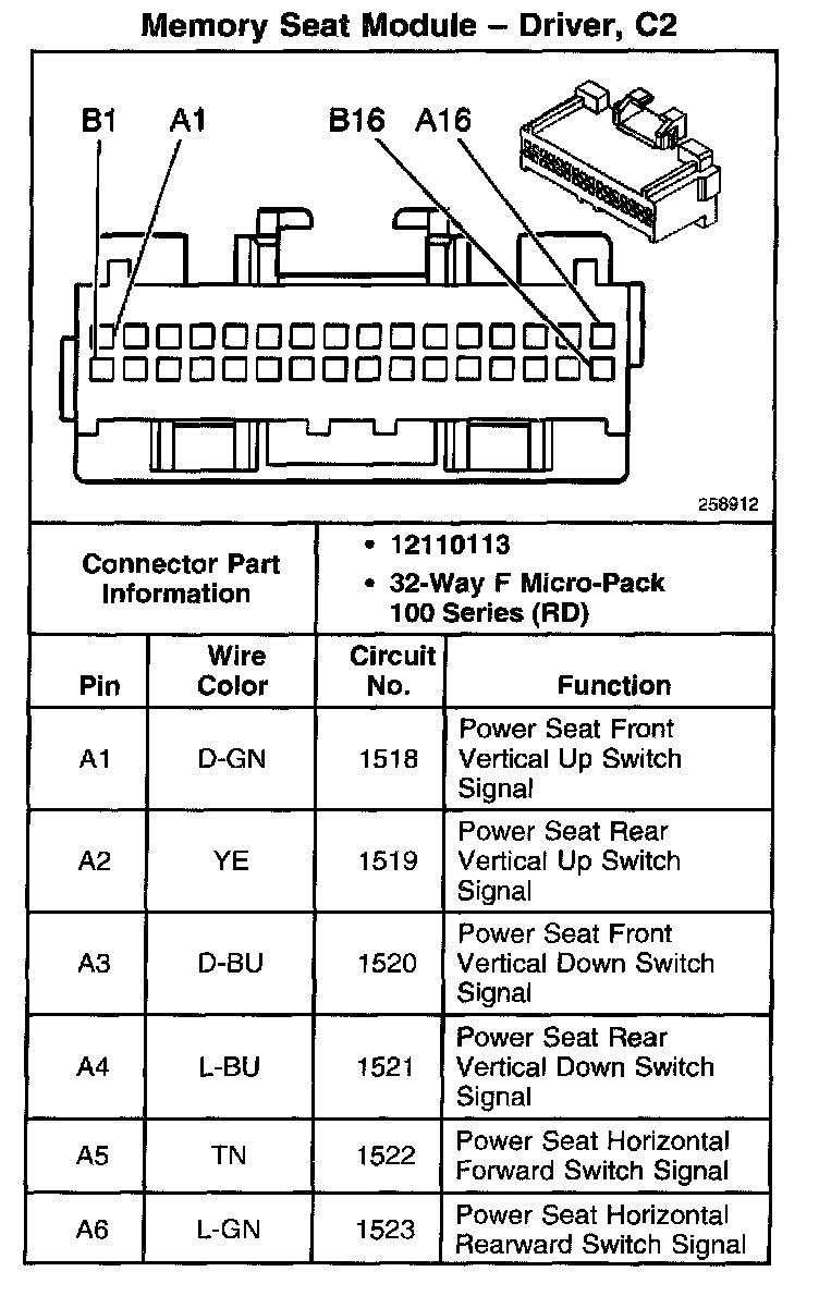 Memory Seat Module - Driver, C2 Part 2: