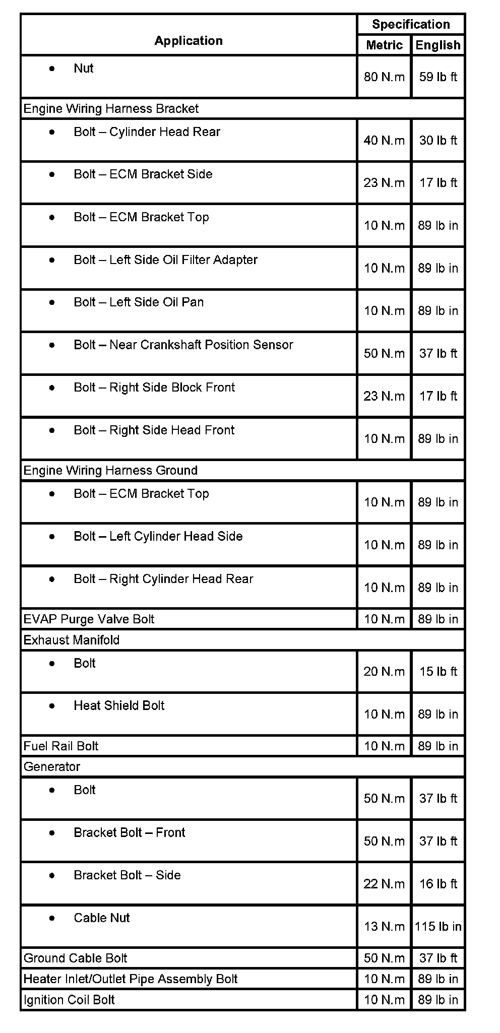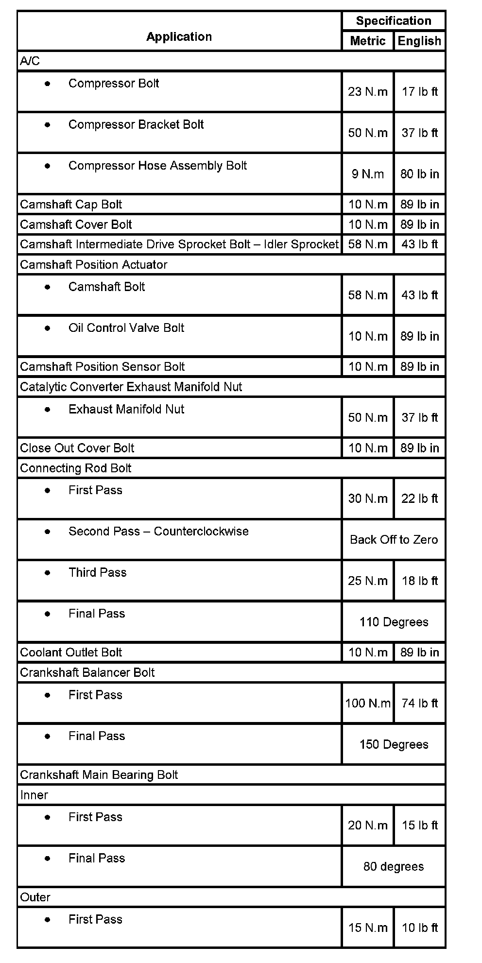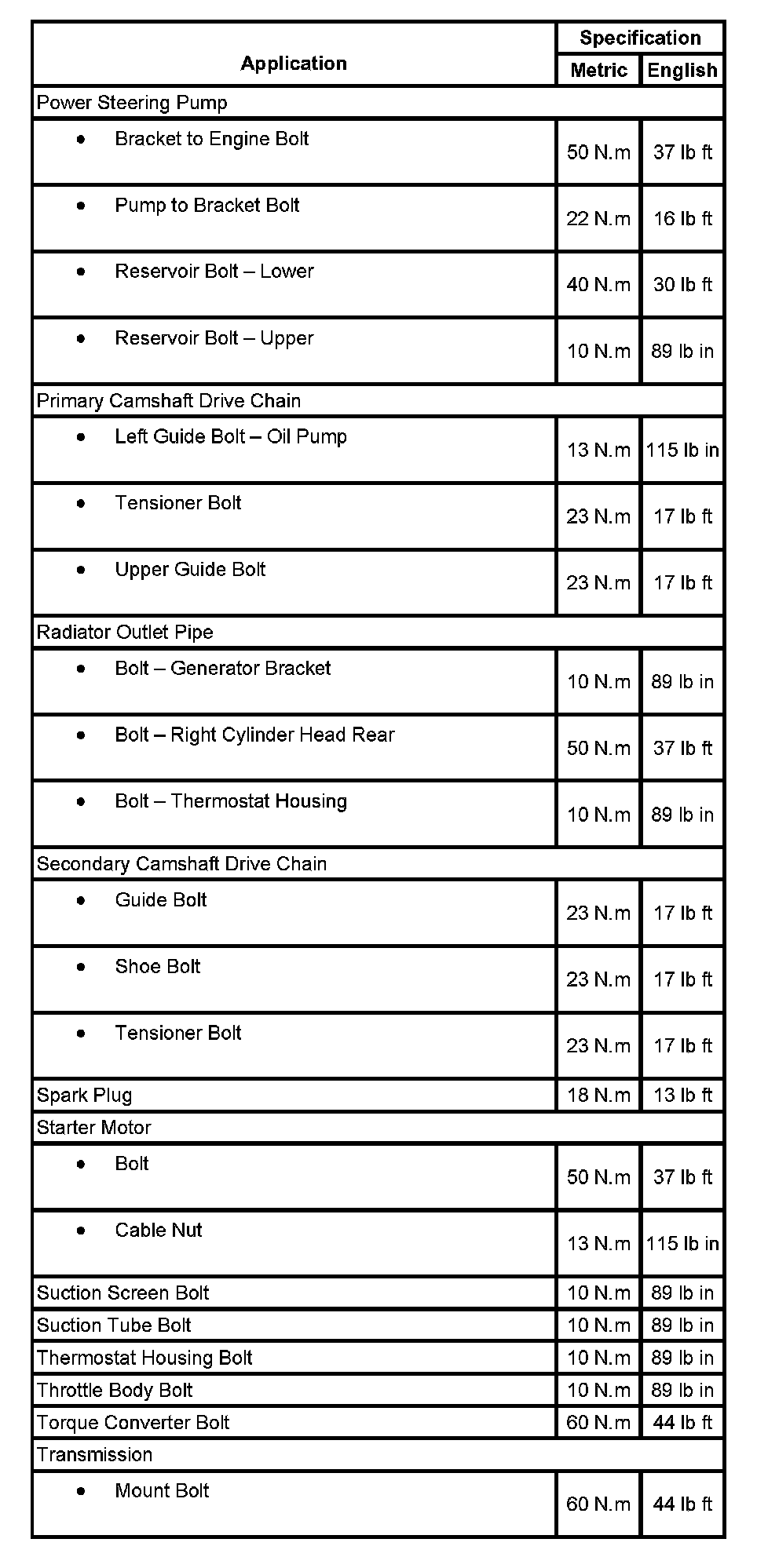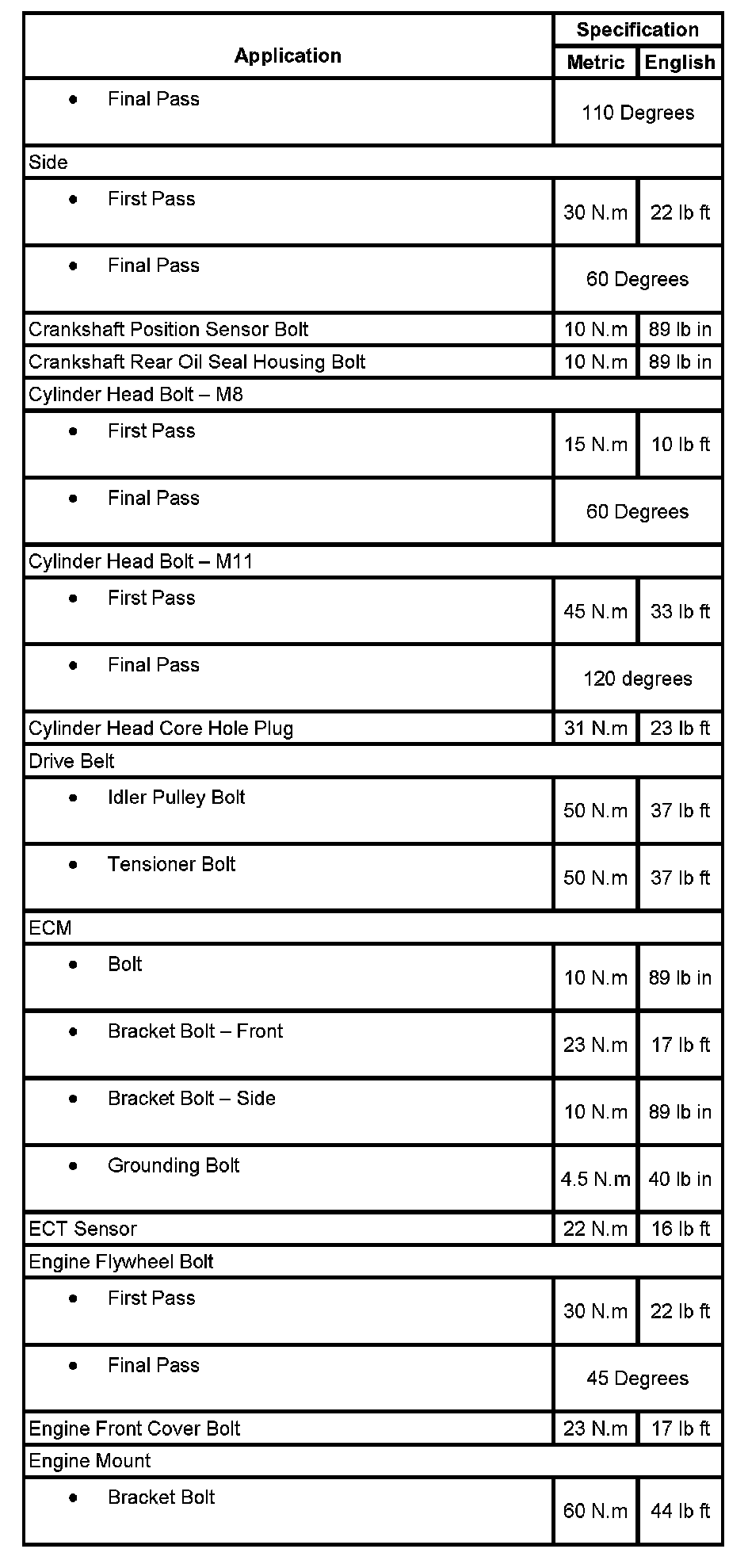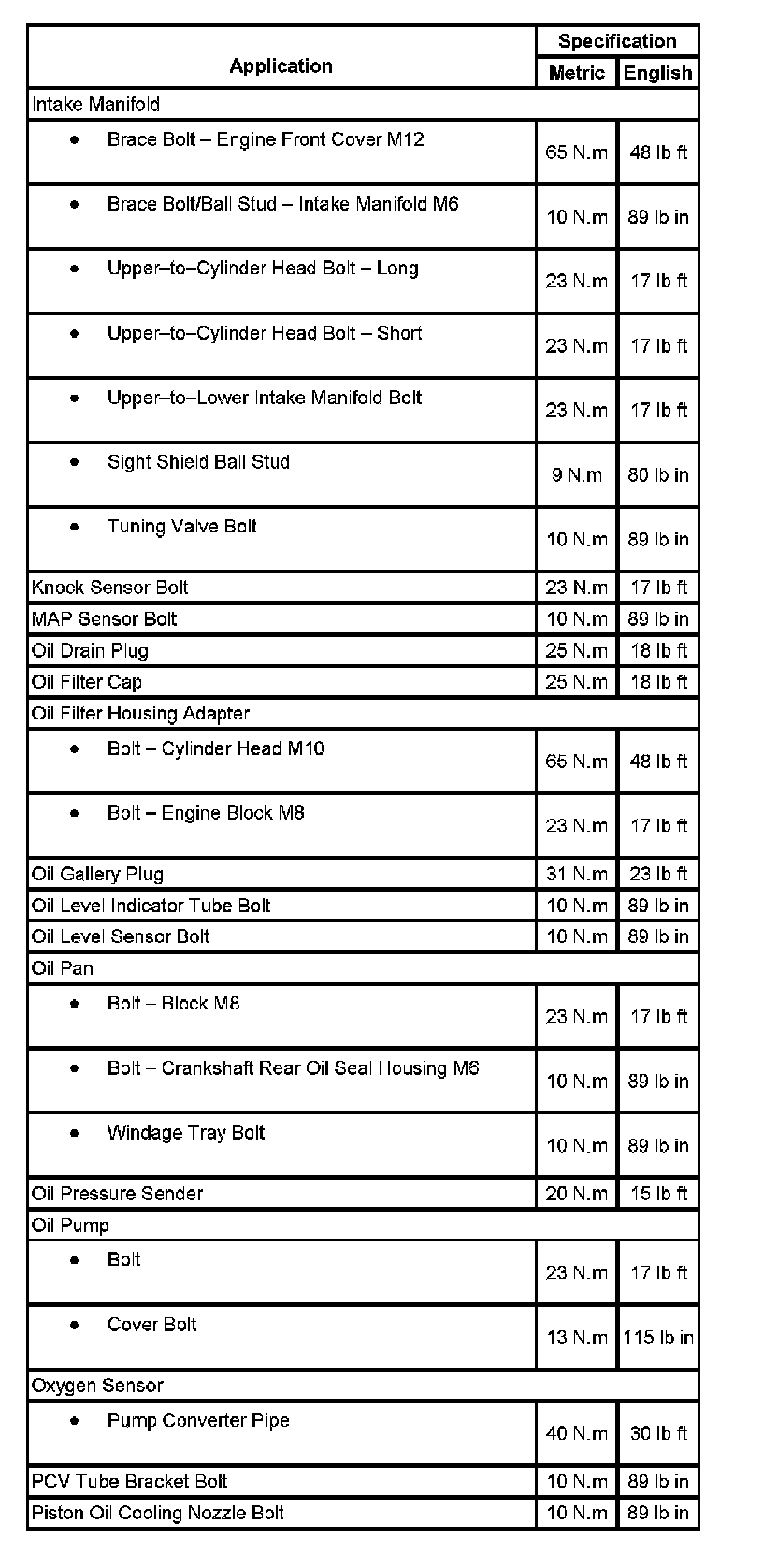 Intake Manifold Bolts 23 Nm (17 lb ft)