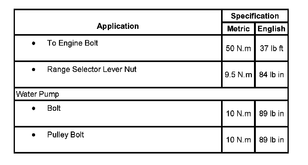 Oil Pump Bolts 23 Nm (17 lb ft)