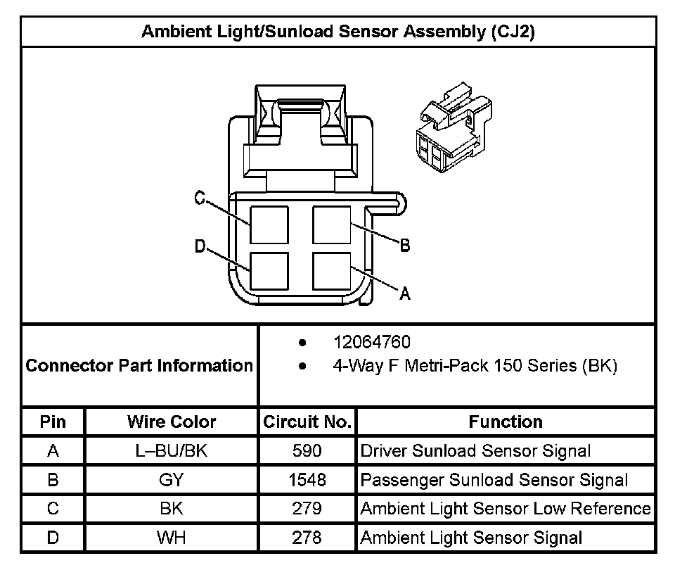 Ambient Light/Sunload Sensor Assembly (With RPO Code CJ2):