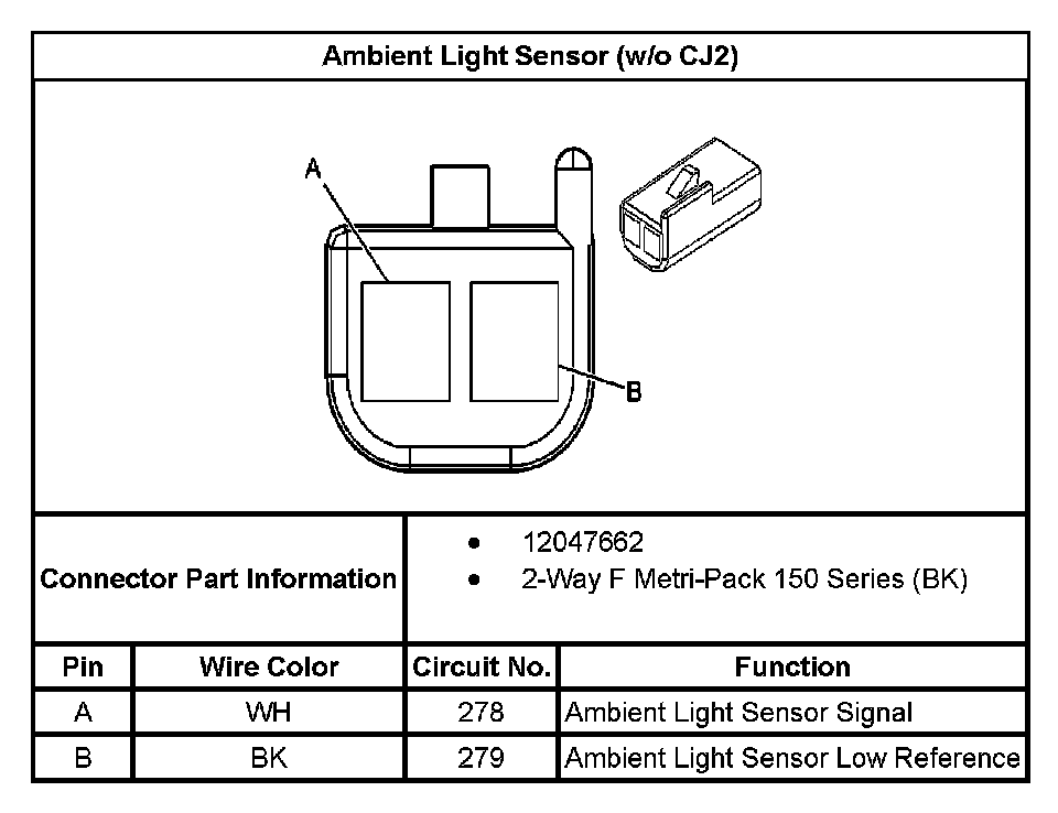 Ambient Light Sensor (without RPO Code CJ2):
