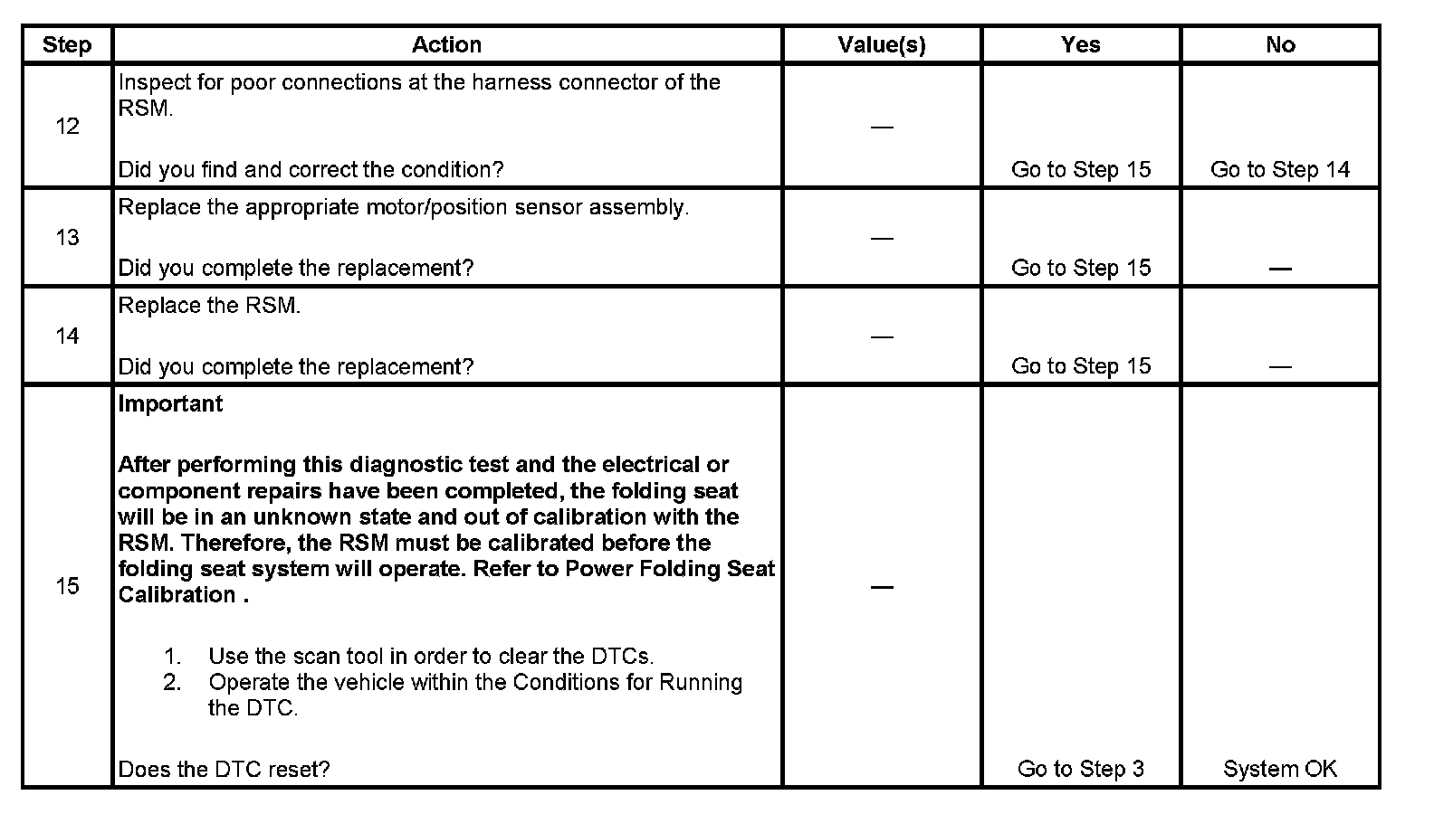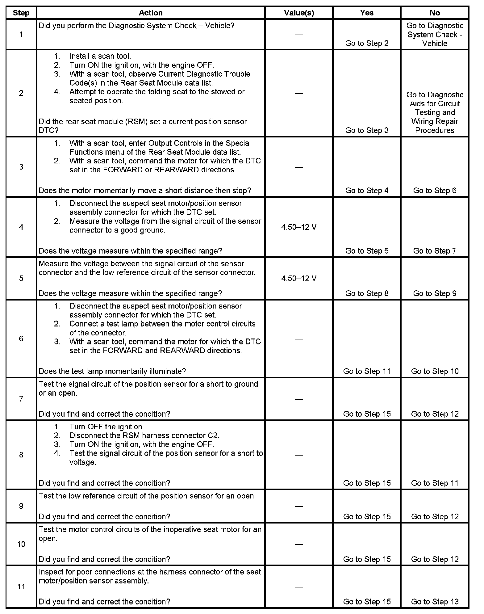 3. This step determines if the fault is in the seat motor or motor control circuits, or, the position sensor or sensor circuits.