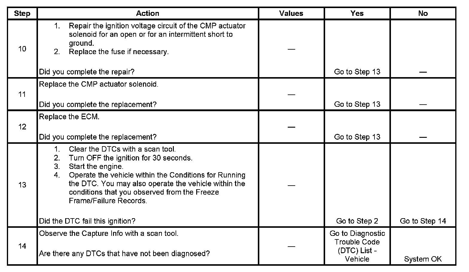 - The ECM detects an open in the CMP actuator solenoid circuits when the solenoid is commanded OFF.