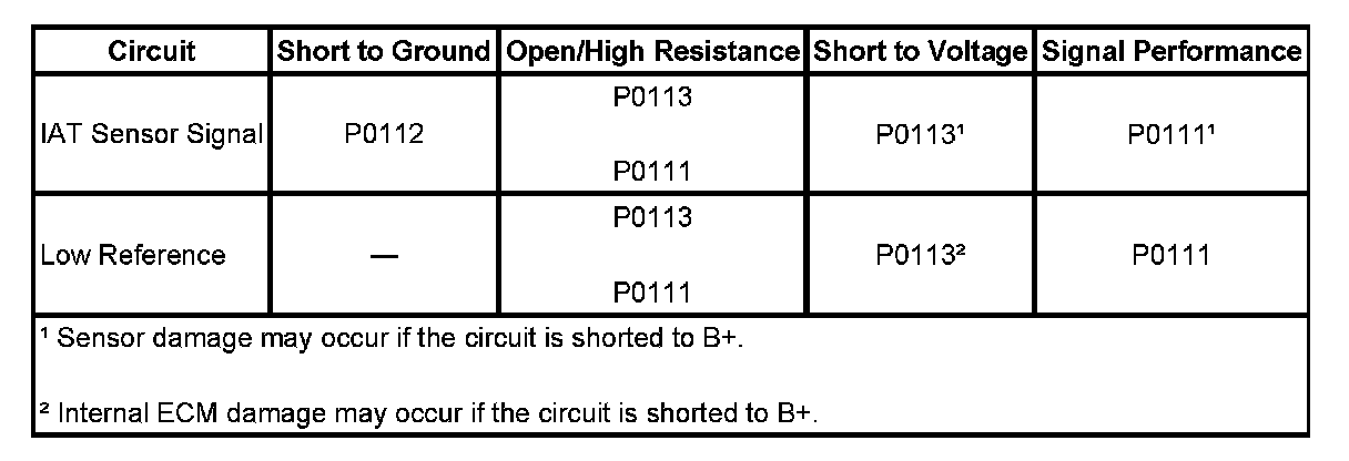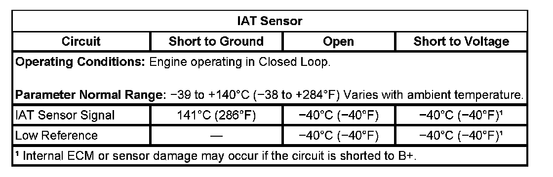 - High resistance on either the IAT sensor signal circuit or the IAT sensor low reference circuit could set a DTC.