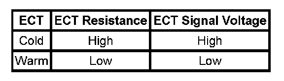 - If the resistance vs temperature is not within 5 percent, replace the ECT sensor.