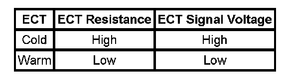 - If the resistance vs temperature is not within 5 percent, replace the ECT sensor.