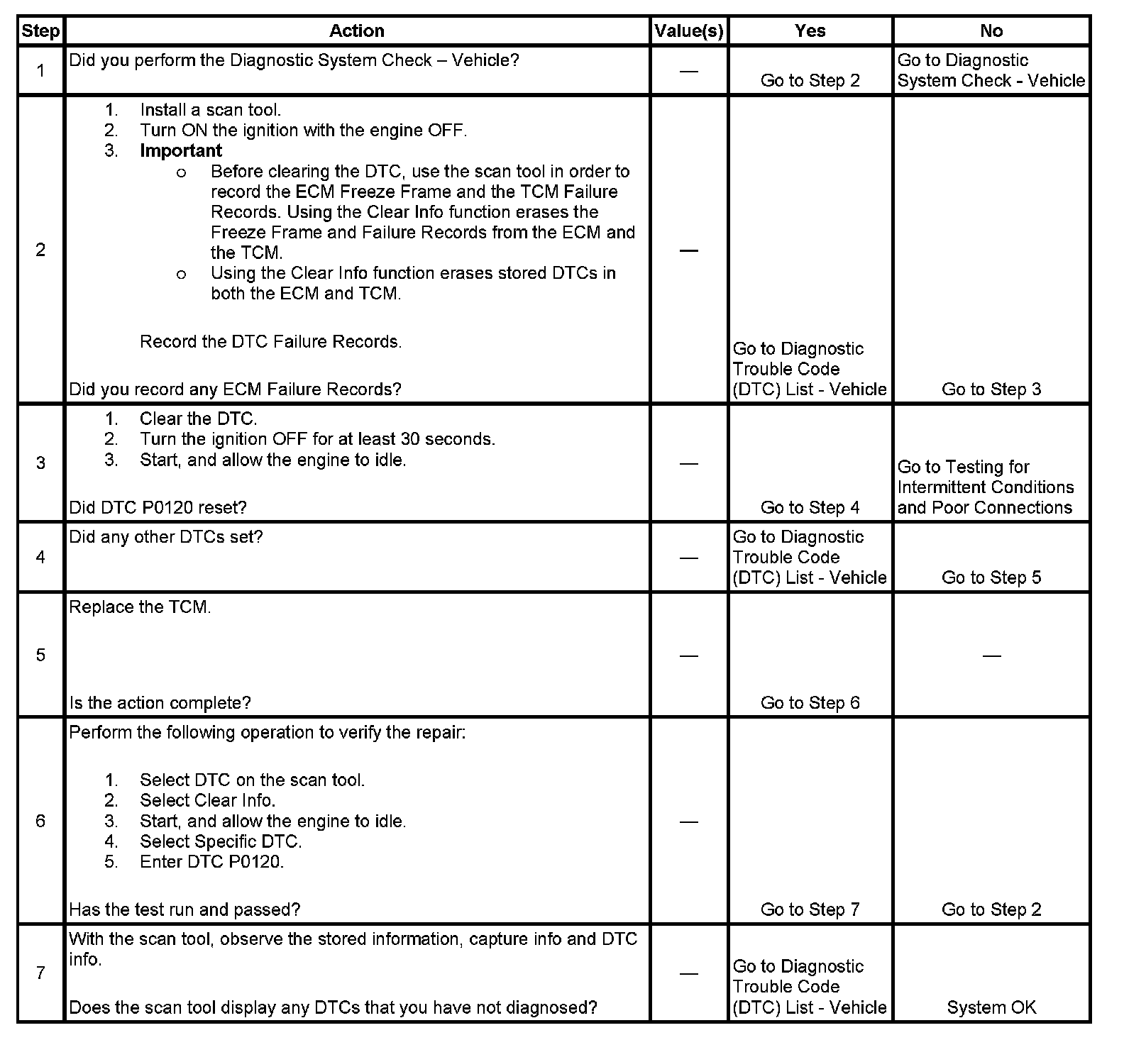 When the TCM receives invalid throttle position data from the ECM, then DTC P0120 will set. DTC P0120 is a type B DTC.
